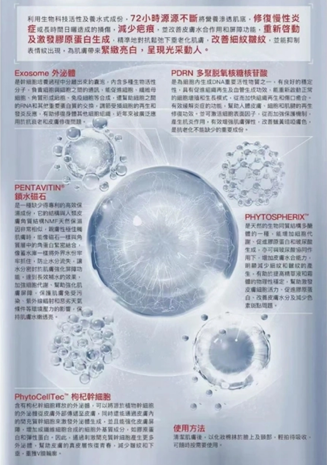 ✅ 獨家「72小時外泌體遞送系統」穿透肌底24小時滲透+72小時緩釋活性,讓細胞「自我修復」超能力全面覺醒!