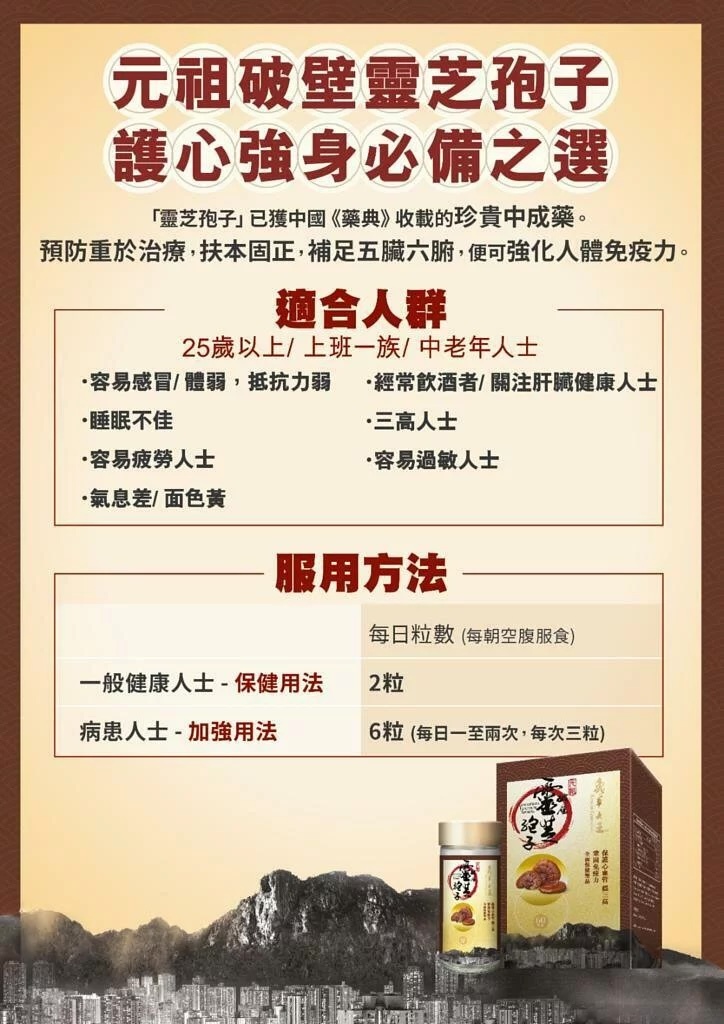 《元祖破壁靈芝孢子》是滋補強身必備之選。不少人飽受慢性健康問題困擾,例如心血管疾病、高血壓、糖尿病等。想預防勝於治療,日常保健是不二法門。天天服食元祖破壁靈芝孢子,為身體建起多重保護網,讓你回復健康活力。