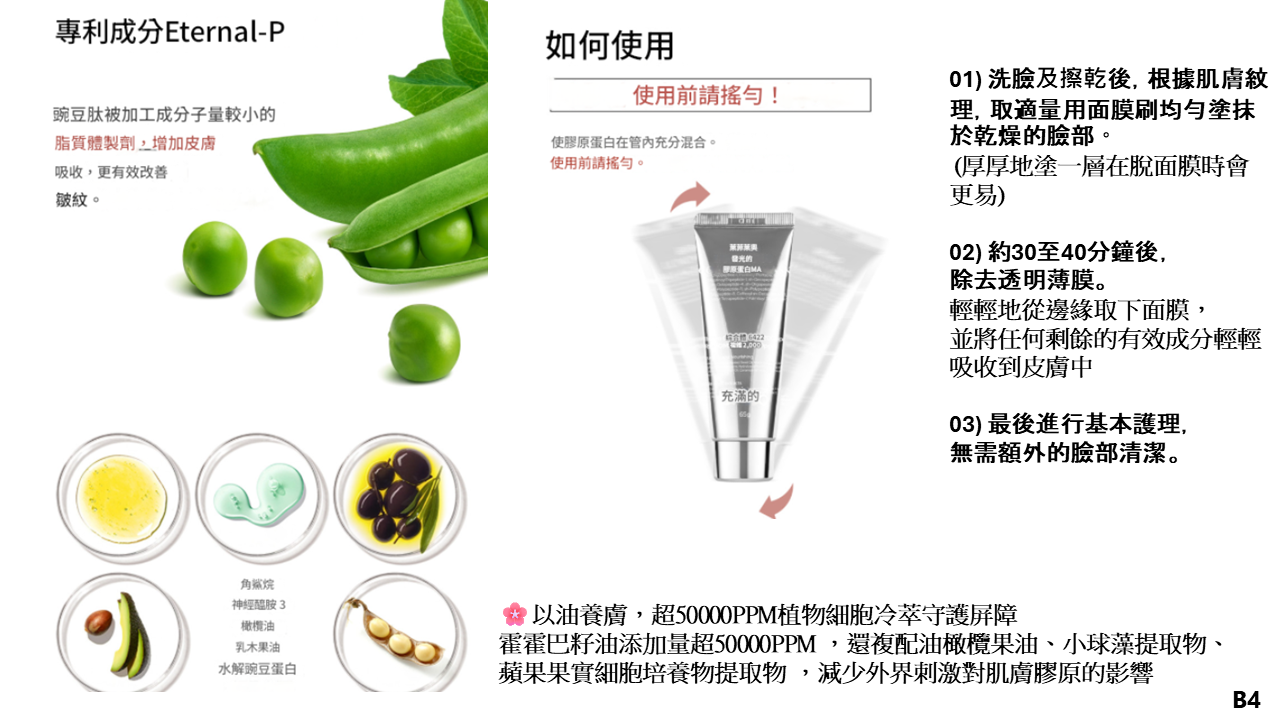就算長時間敷面膜,肌膚營養及水分也不會流失。用完皮膚膠原暴增,