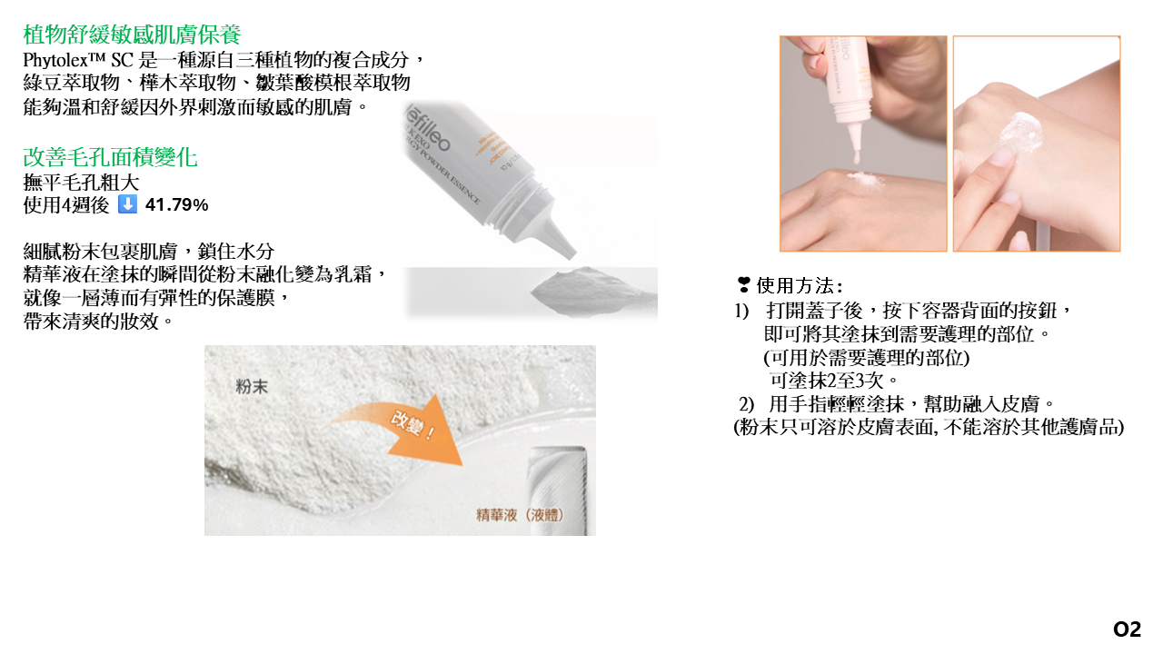 粉體比頭髮還細35倍,如MTS微針般的滲透力,卻不破皮無痛,讓活性成分光速鮮注,100%受試者認同吸收效果好。