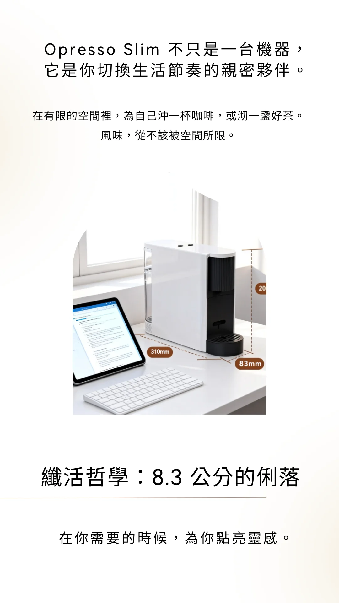 Opresso Slim 不只是一台機器,它是你切換生活節奏的親密夥伴。