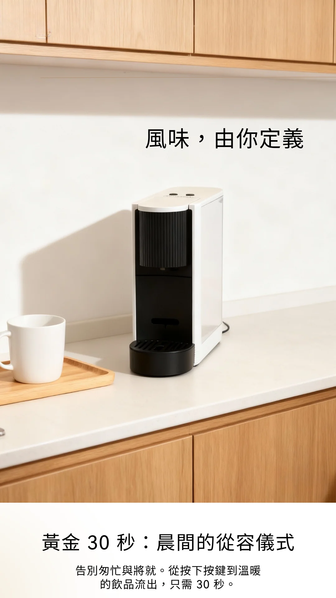 這段時間,剛好夠你選好今天的穿搭,或是回覆一封重要的訊息。讓美好的早晨,從一杯無需等待的香醇開始。