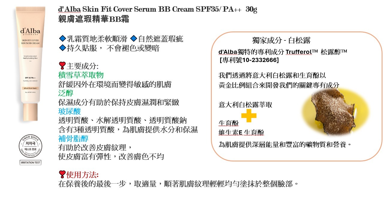 d'AlbaSkin Fit Cover Serum BB Cream SPF35/ PA++ 30g