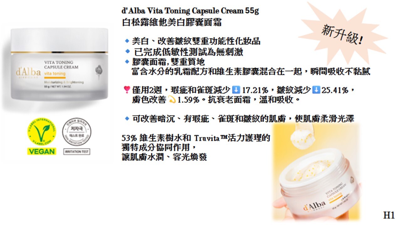 富含水分的乳霜配方和維生素膠囊混合在一起,瞬間吸收不黏膩
