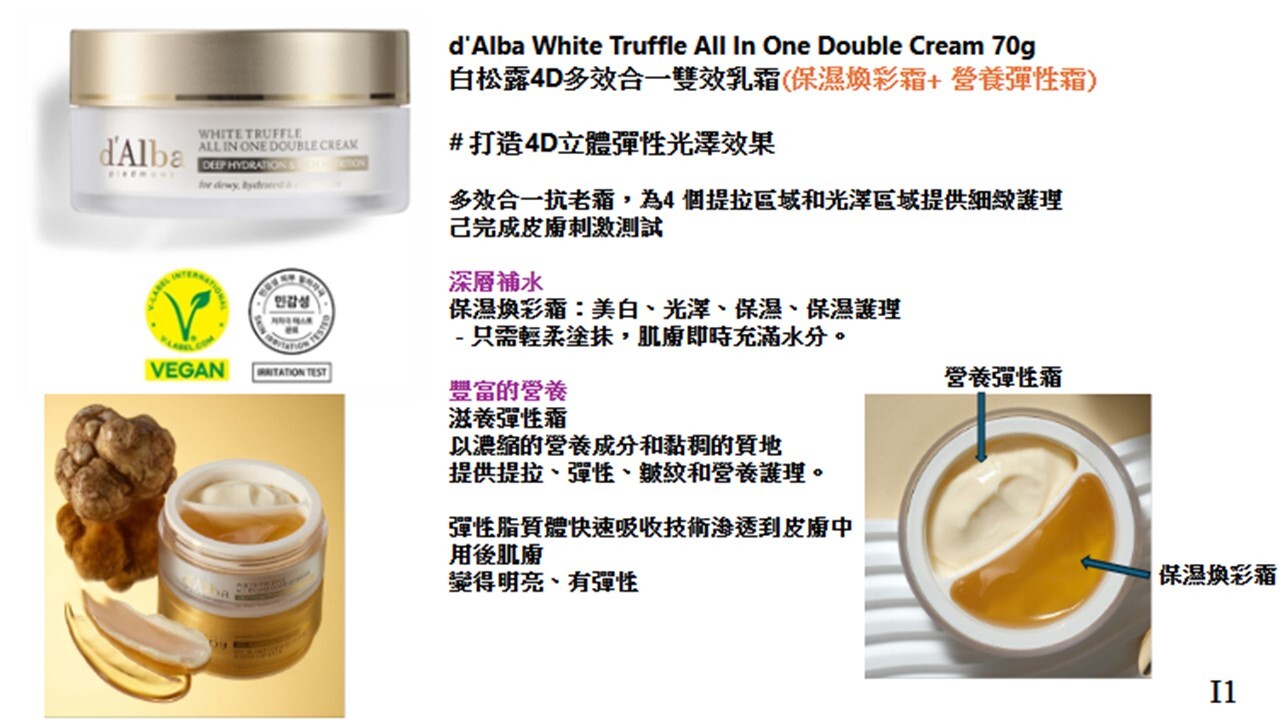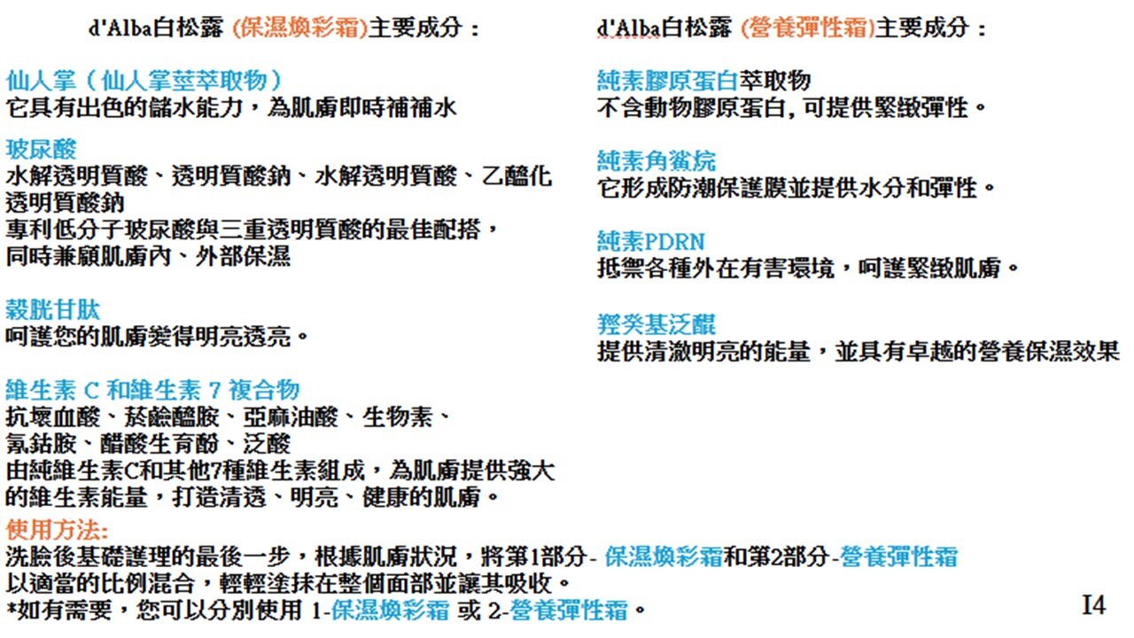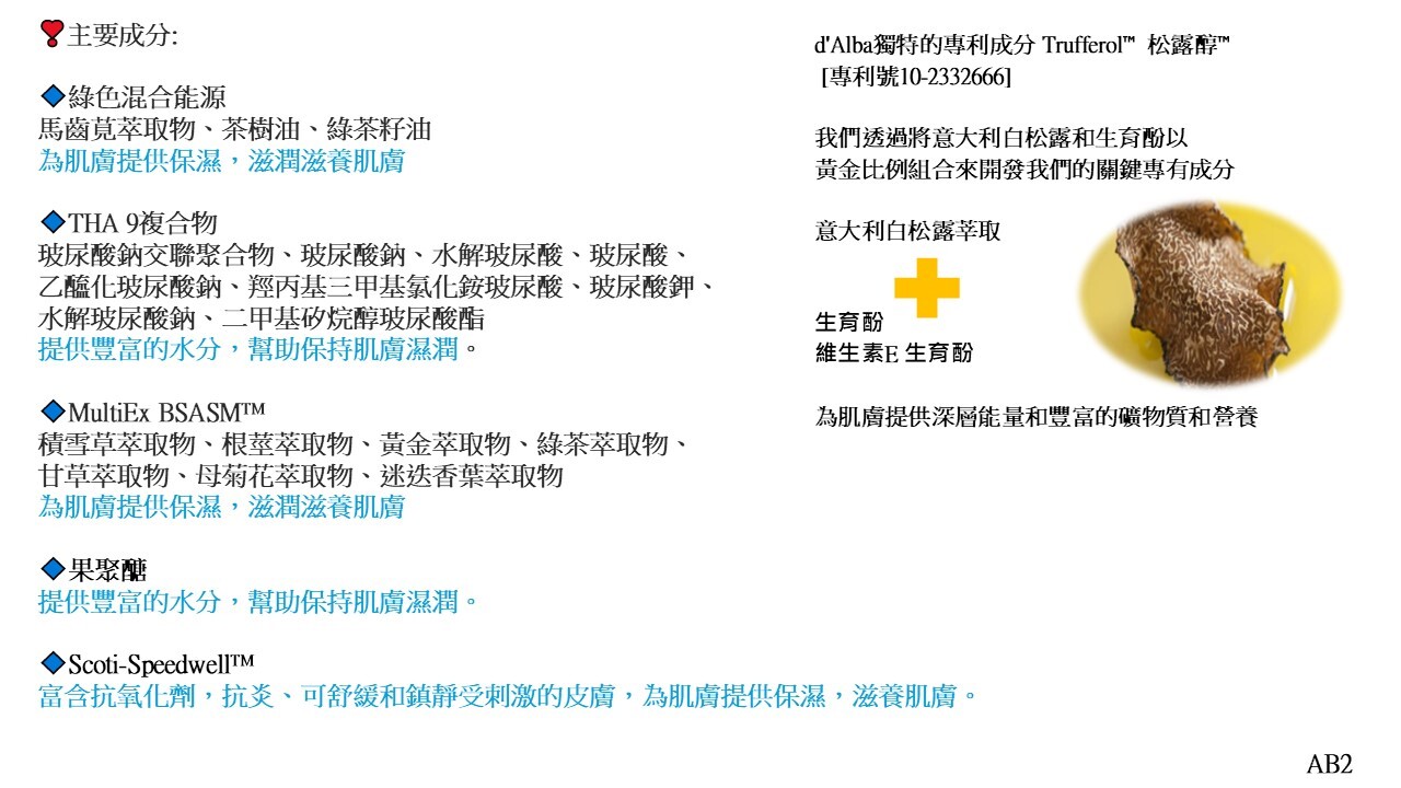 d'Alba白松露(保濕煥彩霜)主要成分: