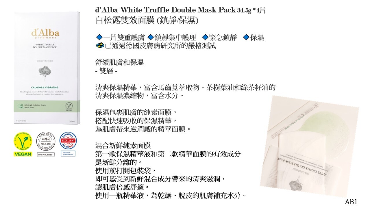 買兩盒送白松露雙效面膜(鎮靜/保濕)一盒