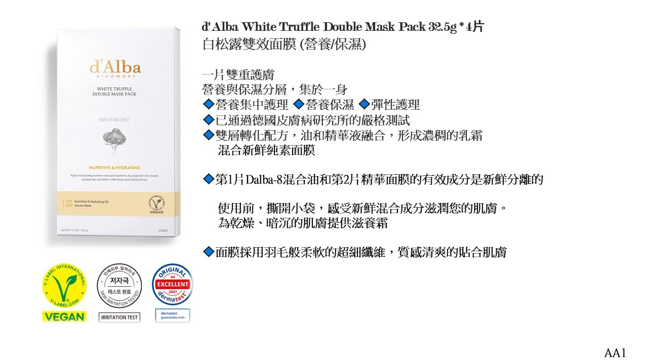 d'Alba White Truffle Double Mask Pack 32.5g *4片