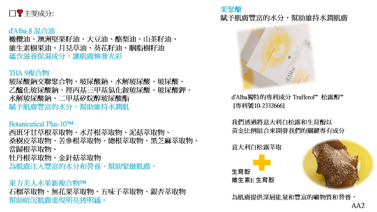 🔹第1片Dalba-8混合油和第2片精華面膜的有效成分是新鮮分離的